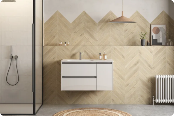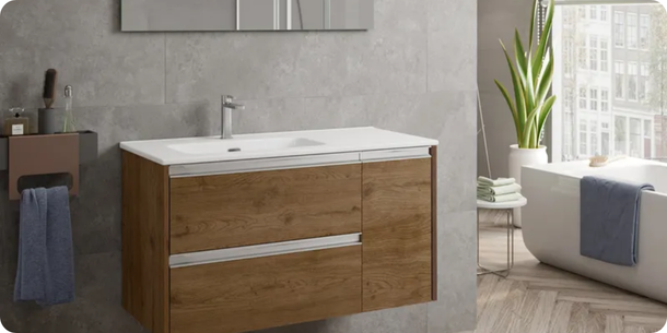 Commencez par mesurer l'espace disponible dans votre salle de bains. Choisissez ensuite parmi nos différentes largeurs de caissons pour une adaptation parfaite à votre pièce :