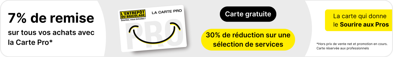 Obtenez 7%* de remise directement en caisse sur tous vos achats et bénéficiez de nombreux avantages en tant que professionnels.
