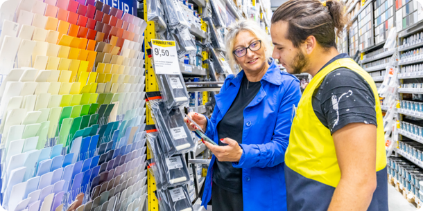 Nos conseillers en magasin écoutent votre projet et réalisent en 3 minutes chrono la peinture de votre choix :