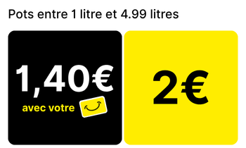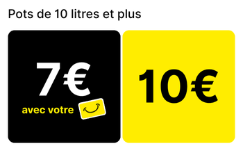 Le prix dépend du volume de peinture choisi, de 1€ à 10€. Avec la Carte Sourire, vous bénéficiez d’une remise immédiate de 30 % sur la mise à la teinte.