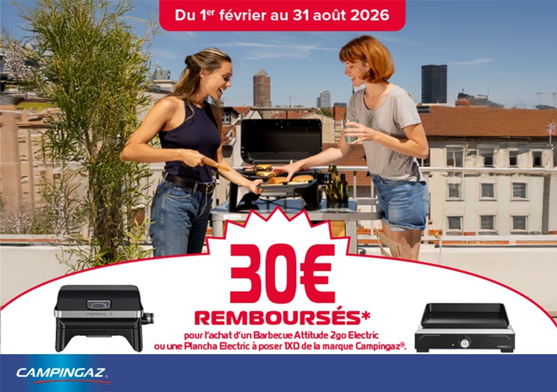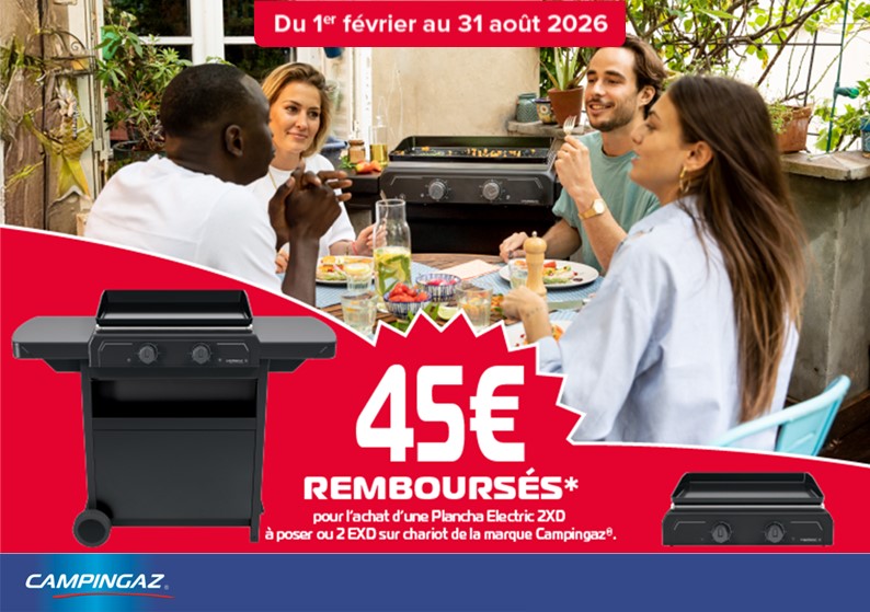 Pour tout renseignement complémentaire, n’hésitez pas à contacter le service consommateur de l’opération par mail : service.consommateur@take-off.fr en précisant le numéro de l’opération (4349) dans l’objet de votre email. Toute réclamation devra être formulée avant le 31/10/2026, l’opération sera définitivement clôturée à cette date. Il vous appartient de garder une copie de votre dossier jusqu’à sa validation. Frais de participation non remboursés. Toute demande incomplète ou effectuée hors délai, fera l’objet d’un email ou d’un courrier de non conformité indiquant les raisons du refus. L’Organisateur refusera toute réclamation s’il apparaissait des fraudes, falsifications du ticket de caisse ou des dysfonctionnements intervenus dans le cadre de la participation. Le cas échéant, l’Organisateur se réserve la possibilité de demander des justificatifs complémentaires permettant de vérifier les déclarations faites en ligne lors de l’inscription (photocopie de la carte d’identité et justificatif de domicile de moins de 3 mois) et de ne pas donner suite à une demande si la fraude est avérée. L’Organisateur ne saurait être tenu responsable du mauvais fonctionnement du réseau internet, ou de tout dommage, matériel ou immatériel causé aux internautes, à leurs équipements informatiques, téléphoniques et aux données qui y sont stockées, dans le cadre de leur participation à l’ODR. Chaque personne, qui participe à l’ODR est réputée avoir pris connaissance des modalités consultables sur le site www.odr-gammeelectrique-campingaz.fr, et les avoir acceptées.