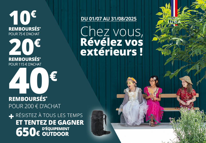 Toute participation valide à l’offre de remboursement inscrira automatiquement le participant à 3 tirages au sort pour tenter de gagner 650€ TTC d’équipements Outdoor (Vêtements, chaussures, sacs à dos, lunettes de soleil…)