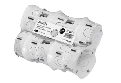 Ce lot comprend 10 boites d'encastrement 1 poste de profondeur 40 mm pour cloison creuse faisant partie de la gamme Multifix de Schneider Electric.