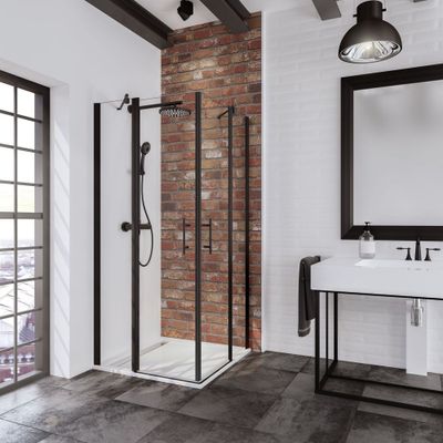 Accès d'angle battant 80x80x192 cm profilé noir verre transparent 5 mm New Style - SCHULTE