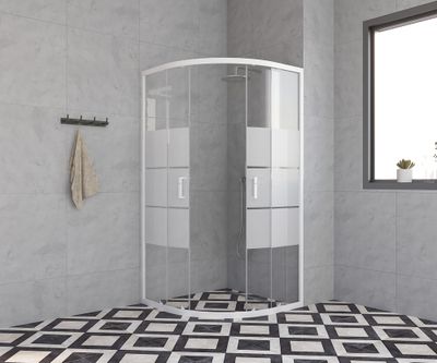 Accès d'angle coulissant 1/4 de cercle 90x90x185 cm profilé blanc verre sérigraphié 4 mm Primera - OCEA