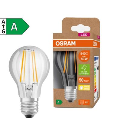 L'ampoule LED E27 à filament de la marque OSRAM est conçue pour éclairer efficacement votre intérieur. l'ampoule LED E27 Osram 4 watts consomme particulièrement peu d'énergie, néanmoins, le rendement lumineux, c'est-à-dire la valeur lumineuse, reste le même. Ainsi, il peut avoir une efficacité lumineuse particulièrement élevée de lm/W. Cela a un effet particulièrement positif sur votre facture d'électricité grâce aux économies d'énergie.