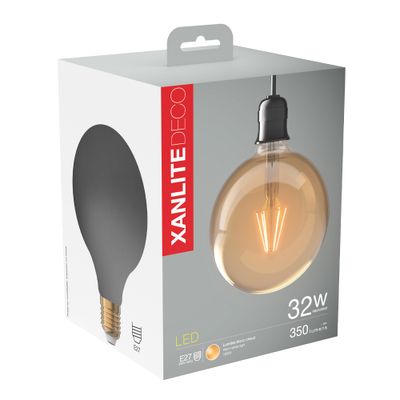 L'ampoule LED GLOBE E27 ambrée 350 lumens Blanc chaud de XANLITE est un éclairage doux aux allures vintage. Avec ses filaments et son globe de 125 mm elle vous plonge dans une ambiance rétro.
