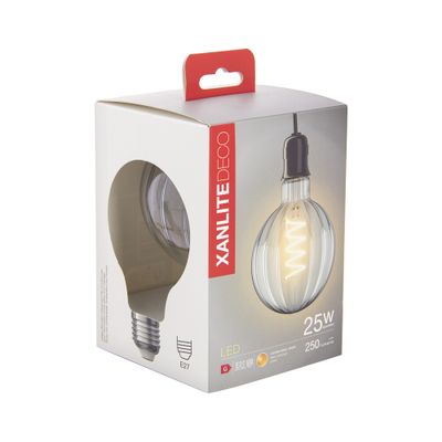 L'ampoule LED GLOBE E27 Filament verre ciselé 240 lumens Blanc chaud de XANLITE est une ampoule décorative de 240 lumens avec un angle de diffusion de 240 degrés.