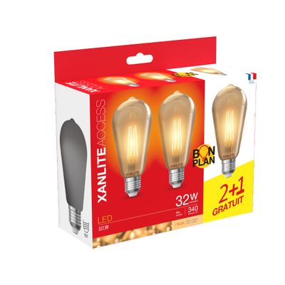Les ampoules LED E27 Edison à filament XANLITE allient charme rétro et performance moderne pour sublimer votre intérieur. Avec leur design de type ST64 au verre travaillé et aux reflets arc-en-ciel, elles créent un effet décoratif unique, que l'ampoule soit allumée ou éteinte.