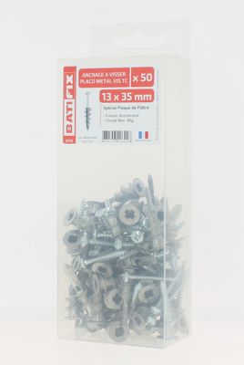 Ancrage à visser métal plaque de plâtre vis tête cylindrique 4 x 30 mm par 50 BATIFIX