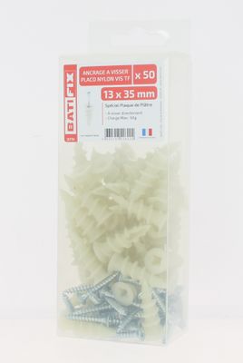 Ancrage à visser nylon pour plaque de plâtre vis tête fraisée 4 x 30 mm par 50 BATIFIX