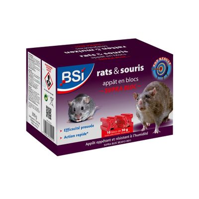 Le Supra Bloc 300 gr est un appât raticide et souricide puissant conçu pour éliminer les rongeurs tenaces en un seul passage.