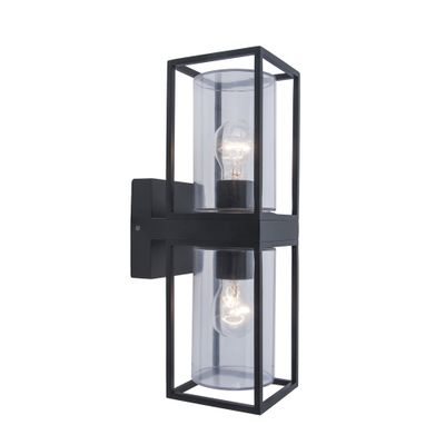 Applique extérieure 2L rectangle noire mat FLAIR en aluminium IP44 E27-40W.