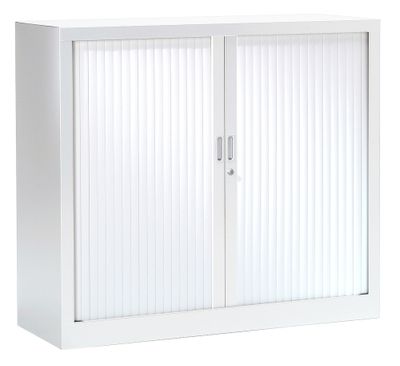 L'Armoire monobloc avec portes rideaux blanc 100 x 120 x 43 - SNOR possède des rideaux PVC à ouverture totale (résistance au feu M1), ainsi qu'une serrure ) clefs pliante anti-crochetagepour une meilleure rigidité et sécurité des armoires.