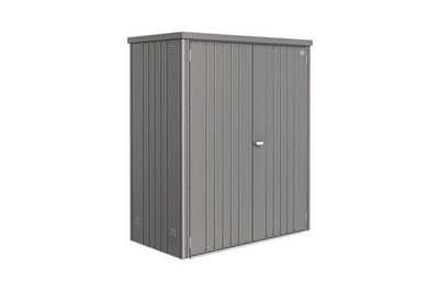 L'armoire à outils T150 gris foncé BIOHORT est fabriquée en acier de haute qualité et bénéficie d'un traitement contre les UV, ce qui la rend parfaitement adaptée aux conditions extérieures. Elle est équipée d'une serrure avec clé pour garantir la sécurité de vos outils et possède des étagères avec fixations verticales pour une organisation optimale. Cette armoire est idéale pour ranger vos outils en toute sécurité, tout en résistant aux intempéries.