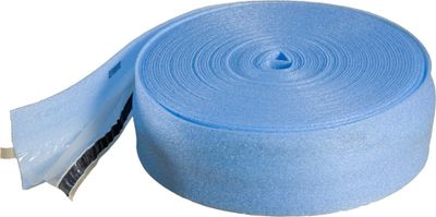 La jupe adhésive (transparente) assure l'étanchéité périphérique (pour éviter les coulées de laitance de la chape entre la bande résiliente et l'isolant). L'adhésif de la jupe se colle sur l'isolant.