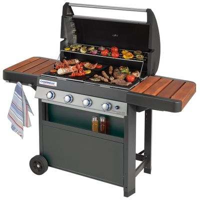 Subtil mélange du design moderne par sa structure en acier et d'une touche rustique et naturelle amenée par ses tablettes en acacias traité à l'huile de lin, ce Barbecue à gaz 4 brûleurs série Classic Woody L Plus CAMPINGAZ va mettre votre extérieur en joie avec sa surface de cuisson en acier émaillé de 3500 cm² (78 x45 cm) qui vous permettra de cuisiner pour 12 à 16 convives. Robuste et durable, sa surface de cuisson est en fonte qui est le matériau retenant durablement la chaleur.
