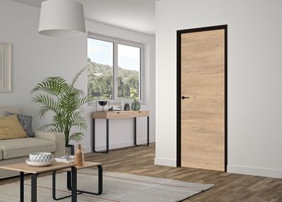 Bloc-porte réversible RIO 2 chêne clair huisserie noire H. 204 x 73 x 4 cm