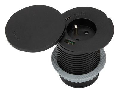 Discret, il s'insère dans tous vos plans de travail, bureaux, tables de chevet ou d'appoint. Vous pourrez y brancher simultanément un appareil électrique sur la prise 16A et 2 appareils multimédias sur les prises USB A et USB C.