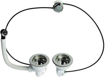 Bonde pour évier inox, grès ou synthèse 2 bacs Ø90 mm.
