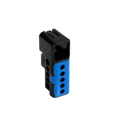Ce bornier neutre à 5 bornes, conçu par DEBFLEX, est idéal pour les coffrets de protection et les systèmes de distribution électrique.