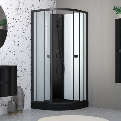 Cabine de douche 1/4 de rond profilé noir mat et receveur noir 85x85x200 cm Essentiel AURLANE