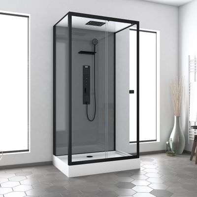 La cabine de douche hydromassante Trendy retangle, avec son desing intemporel et ses profilés noir mat, s'intégrera parfaitement dans votre salle de bains.