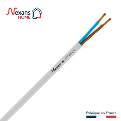 Le câble HO3VVH-F 2 x 0,75 mm² blanc souple de forme ronde, permet de raccorder en alimentation électrique des appareils électro-domestiques légers (ustensiles de cuisine, lampes de bureau, lampes de sol, des aspirateurs, des machines de bureau...)