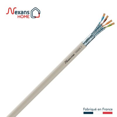Ce câble S/FTP grade 3 satellite ivoire au mètre NEXANS est prescrit pour toute nouvelle construction depuis juillet 2003 selon la norme NF C 15-100.