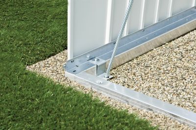 Ce cadre de sol en aluminium permet de monter l'abri de jardin Panorama sur un terrain irrégulier et l'ancrer pour qu'il résiste aux tempêtes (ancrages inclus).