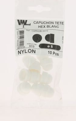 Capuchons tête hexagonale plastique blanc M8 par 10 VISWOOD