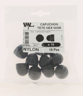 Capuchons tête hexagonale plastique noir M10 par 10 VISWOOD