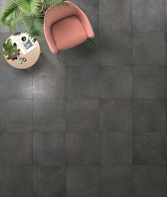 Le carrelage de sol intérieur rectifié LONDON plomb 60 x 60 propose un joli effet béton aux reflets métallescents recréés par la céramique.
