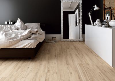 Attention, ce carrelage imitant parfaitement le bois naturel, les lames peuvent faire apparaître des noeuds de bois creusés et de faux traits de scie pour un rendu plus réaliste et un aspect décoratif moderne ! Des variations de couleurs entre les lames sont à prendre en compte.