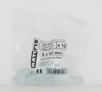 Cheville métal expansion plaque de plâtre vis tête cylindrique 5 x 52 mm par 10 BATIFIX