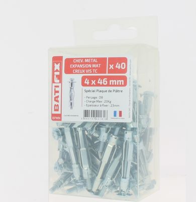 Chevilles métal expansion plaque de plâtre vis tête cylindrique diamètre 4 x 46 mm par 40 BATIFIX