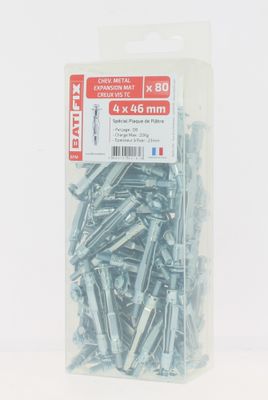 Chevilles métal expansion plaque de plâtre vis tête cylindrique diamètre 4 x 46 mm par 80 BATIFIX