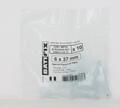 Chevilles métal expansion plaque de plâtre vis tête cylindrique diamètre 6 x 37 mm par 10 BATIFIX