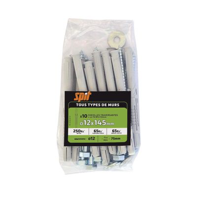 Chevilles nylon prolong 12 x 145 mm avec vis tête hexagonale 9 x 150 mm par 10 SPIT