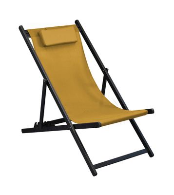 La chilienne Linea est parfaite pour votre espace extérieur avec son châssis en aluminium epoxy et sa toile TPEP assortie de couleur moutarde. Cette chilienne est pliante et réglable en 4 positions, offrant un confort personnalisé. Elle est équipée d'une têtière assortie à la toile pour un soutien supplémentaire.