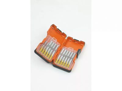 15 lames T144D 75 mm pour une curviligne rapide, 10 lames T101AO 50 mm pour une curviligne nette, 10 lames T101B 75 mm pour un travail propre et sans éclat et 15 lames T101D 75 mm, pour des découpes droite, rapide et propre.