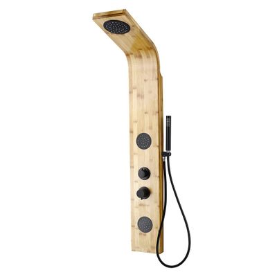 À la fois esthétique et fonctionnelle, cette colonne hydromassante en bambou s'intègre aussi bien dans une salle de bains contemporaine que dans une ambiance zen et naturelle.