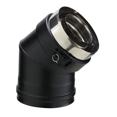 Le Coude 45° diamètre 80 mm à 130 mm avec collier de jonction noir PGI POUJOULAT permet la réalisation d'un changement de direction pour ce conduit concentrique de votre poêle à granulés.