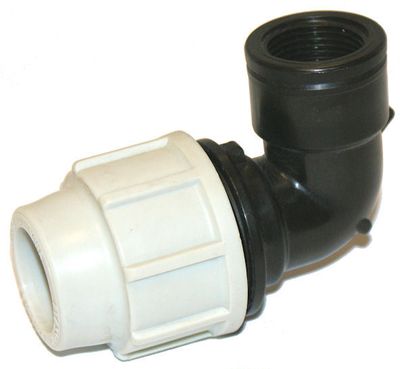 Coude femelle diamètre 25mm, s' utilise pour l' arrosage enterré avec un tuyau polyéthyléne diamètre 25mm.
