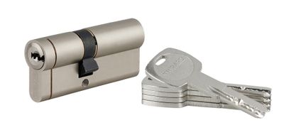 Ce cylindre de serrure assure une sécurité renforcée grâce à son mécanisme à 6 goupilles. Il assure une protection contre le crochetage, contre le perçage par la 1ère goupille et le poussoir en acier trempé. Il protège aussi contre l'effraction de la partie saillante du cylindre (anti-snap) et possède un panneton anti arrachement.
