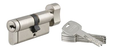 Ce cylindre de sûreté à bouton possède une entrée de clé et un bouton côté intérieur. Celui-ci peut être actionné à tout moment pour ouvrir la porte, sans avoir besoin de la clé. Ce cylindre appelé aussi barillet est principalement utilisé sur les portes intérieures. Il est aussi particulièrement recommandé quand il existe un risque d'enfermement ou d'impossibilité d'ouvrir de l'intérieur. En effet avec ce type de cylindre la clef pourra toujours ouvrir par l'extérieur.