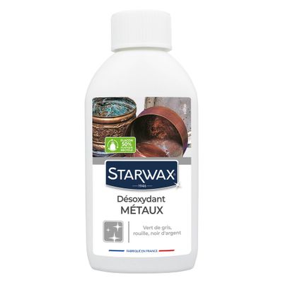 Le décapant désoxydant pour métaux STARWAX s'utilise pur sur cuivres, argent massif, laiton, bronze, fonte et métaux ferreux très oxydés, avant un nettoyage avec le nettoyant Starwax adapté.