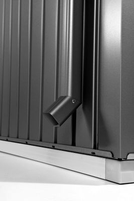 Descente d'eaux pluviales avec coudes d'évacuation et matériel de fixation pour les abris de jardin Europa Biohort.