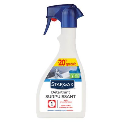 Le détartrant surpuisssant pour salle de bains STARWAX élimine en profondeur les couches épaisses et anciennes de calcaire.