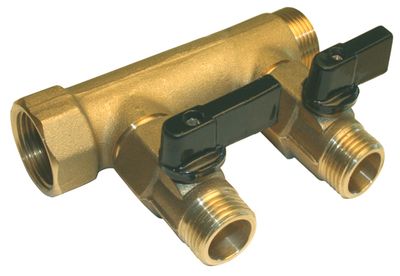 Distributeur mâle femelle 20/27 (3/4) avec 2 départs 15/21 (1/2) + vannes